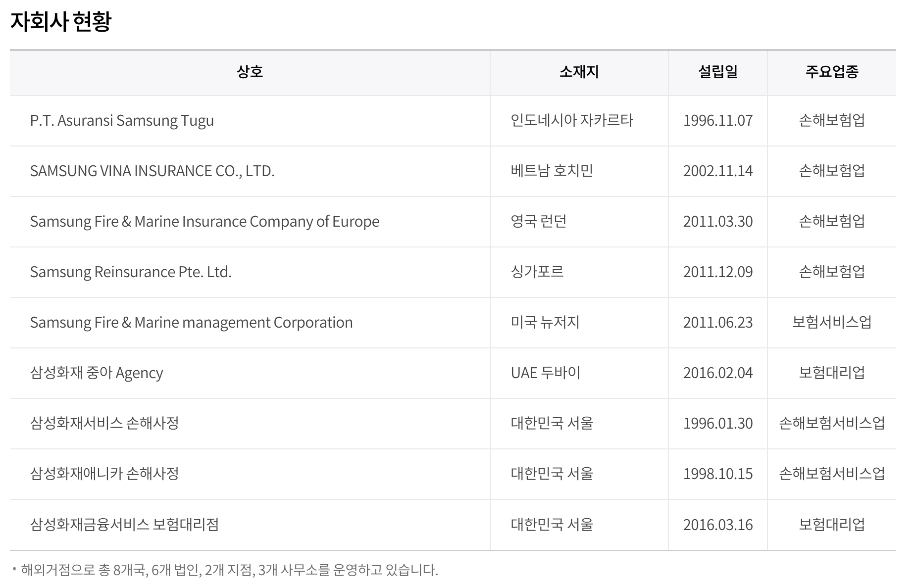 삼성화재 자회사 현황 입니다.