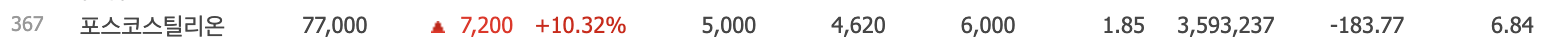 포스코스틸리온은 코스피에 상장되어 있으며 시가총액 367위의 기업입니다. (2023년 9월 기준)