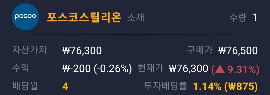 적은 금액이라도 POSCO홀딩스처럼 분기배당을 실시하기를 응원해 봅니다.