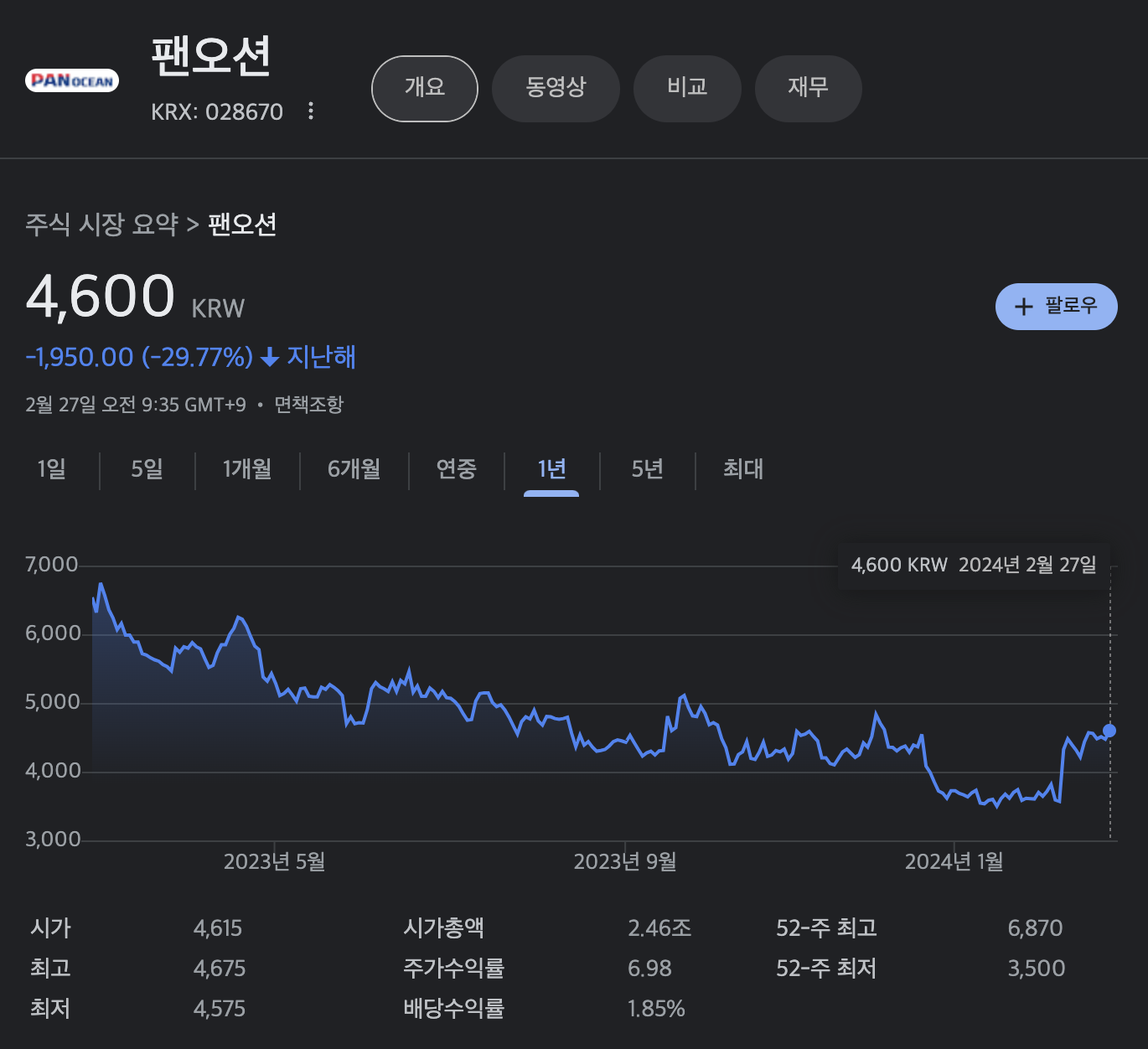 팬오션(028670) 주가 및 뉴스 - Google Finance