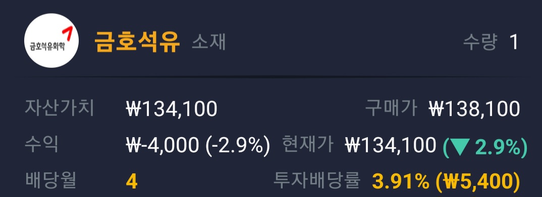 금호석유 비교대상 종목의 배당금 포스팅 입니다.