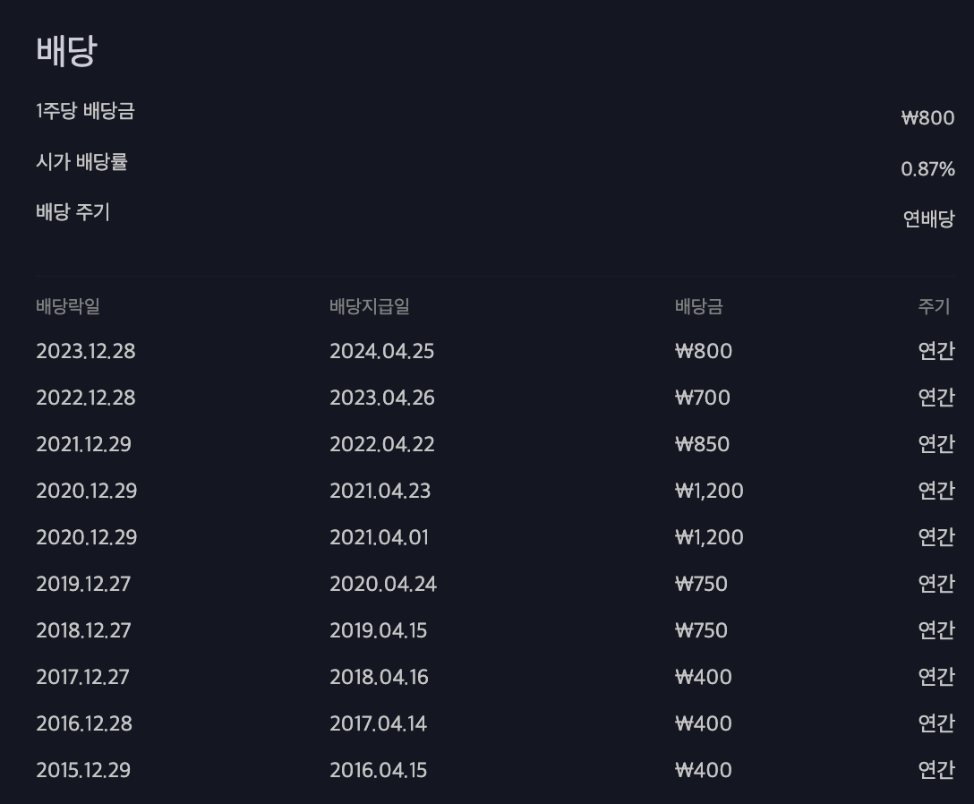 하단의 이미지는 배당금액만 참고하시고 배당기준일은 직접 확인하시는 것이 정확합니다.