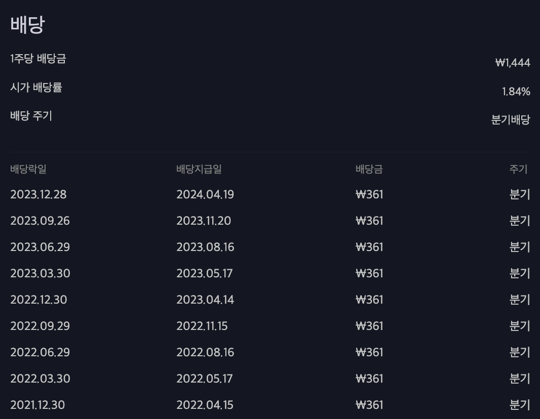 하단의 이미지는 배당금액만 참고하시고 배당기준일은 직접 확인하시는 것이 정확합니다.