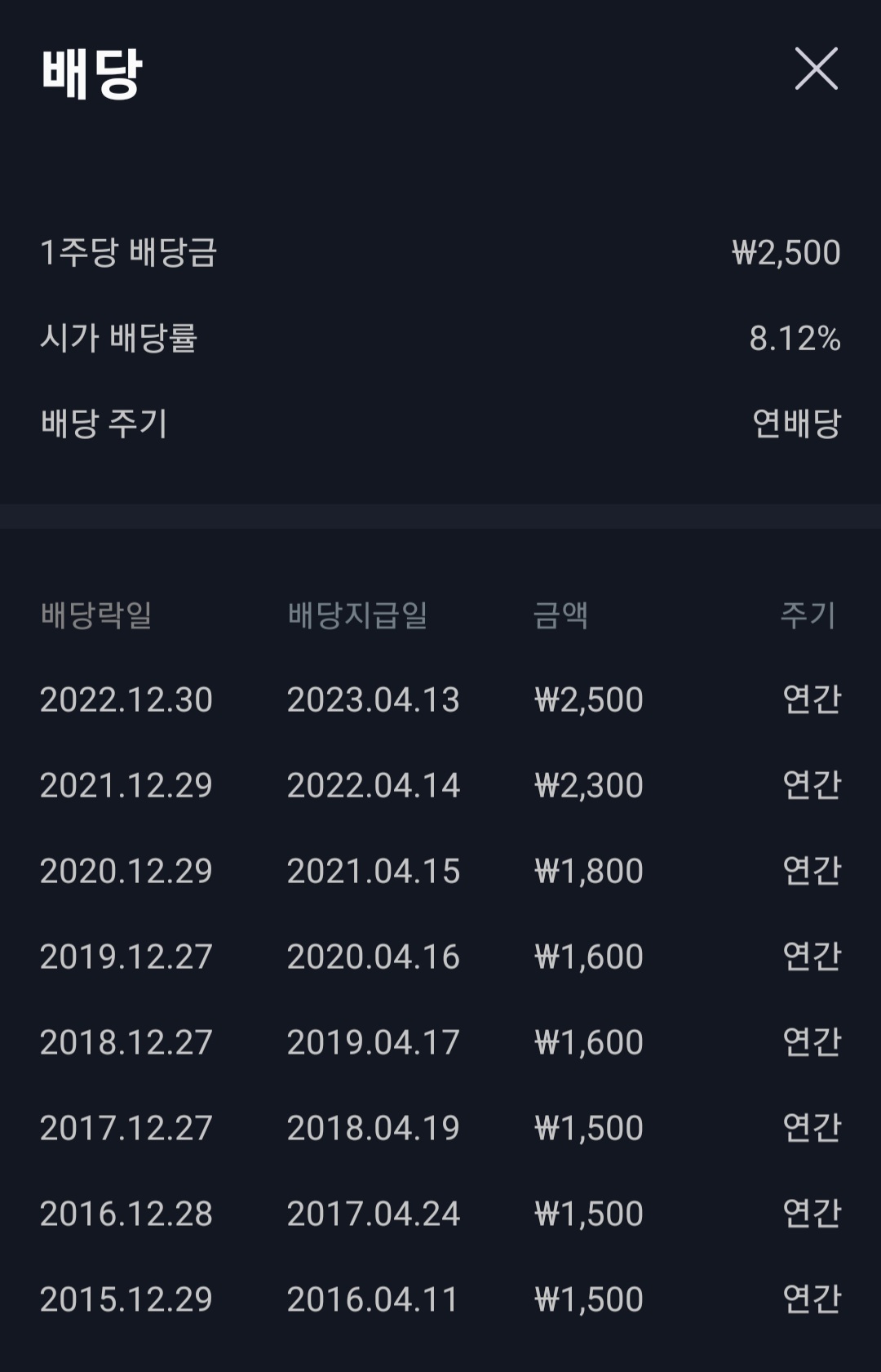 하단의 이미지는 배당금액만 참고하시고 배당기준일은 직접 확인하시는 것이 정확합니다.