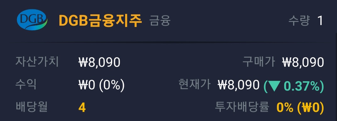 DGB금융지주도 시가 배당률이 높은 만큼 주주친화정책으로 분기배당 하기를 응원해봅니다.