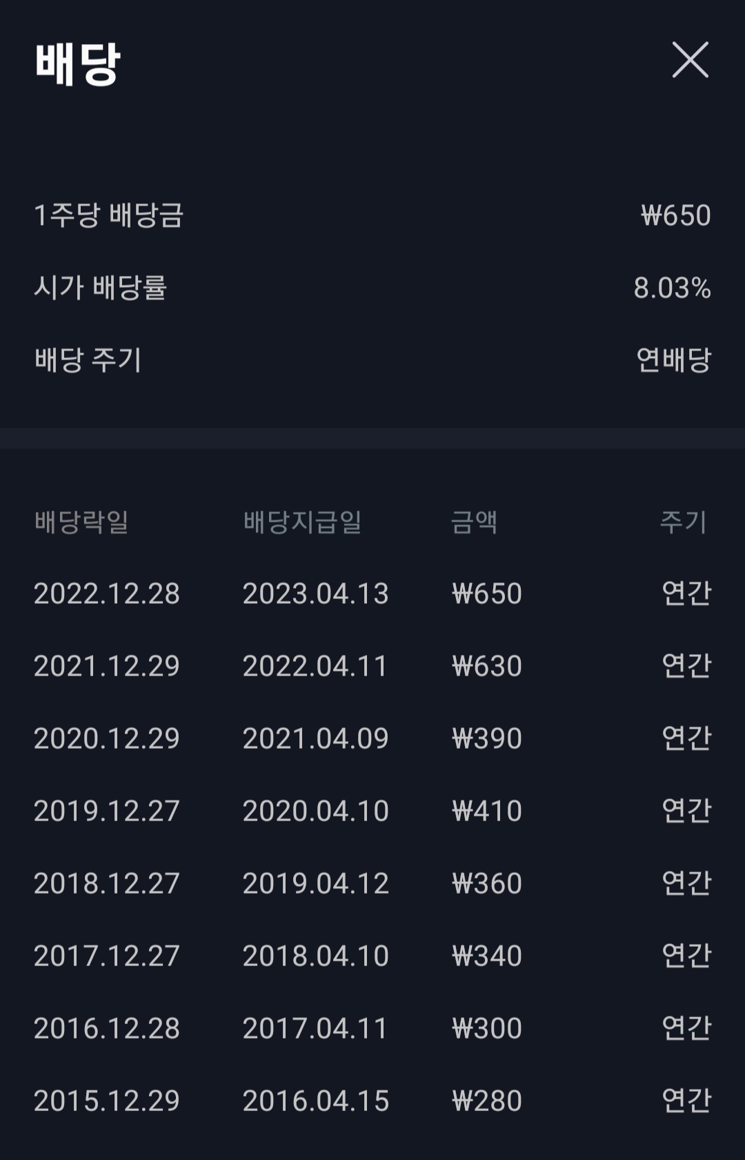 하단의 이미지는 배당금액만 참고하시고 배당기준일은 직접 확인하시는 것이 정확합니다.