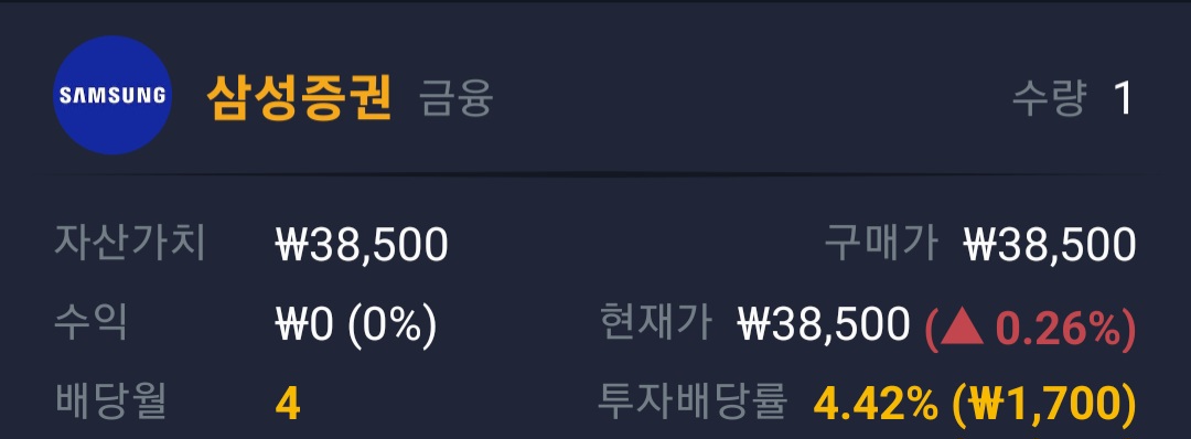 삼성증권은 2015년부터 연간배당을 실시했습니다.