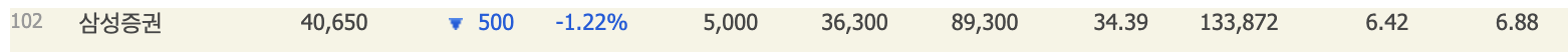 삼성증권은 코스피에 상장되어 있으며 시가총액 102위의 기업입니다.(2024년 3월기준)