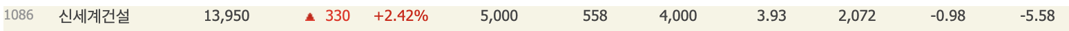 구글 금융(2023년 11월 기준 신세계건설은 구글에서 신세계건설 종목번호로만 조회가 가능합니다.(034300)