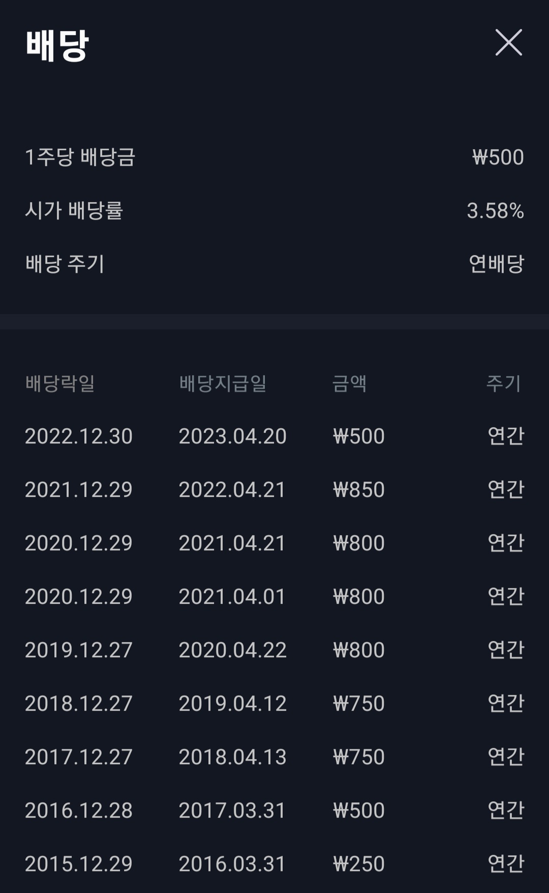 하단의 이미지는 배당금액만 참고하시고 배당기준일은 직접 확인하시는 것이 정확합니다.