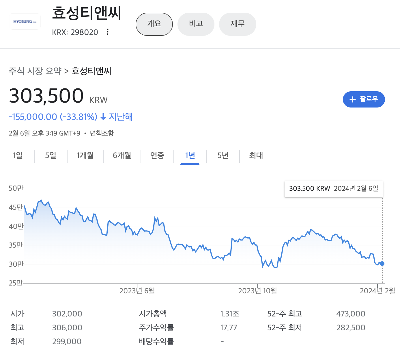 효성티앤씨(298020) 주가 및 뉴스 - Google Finance