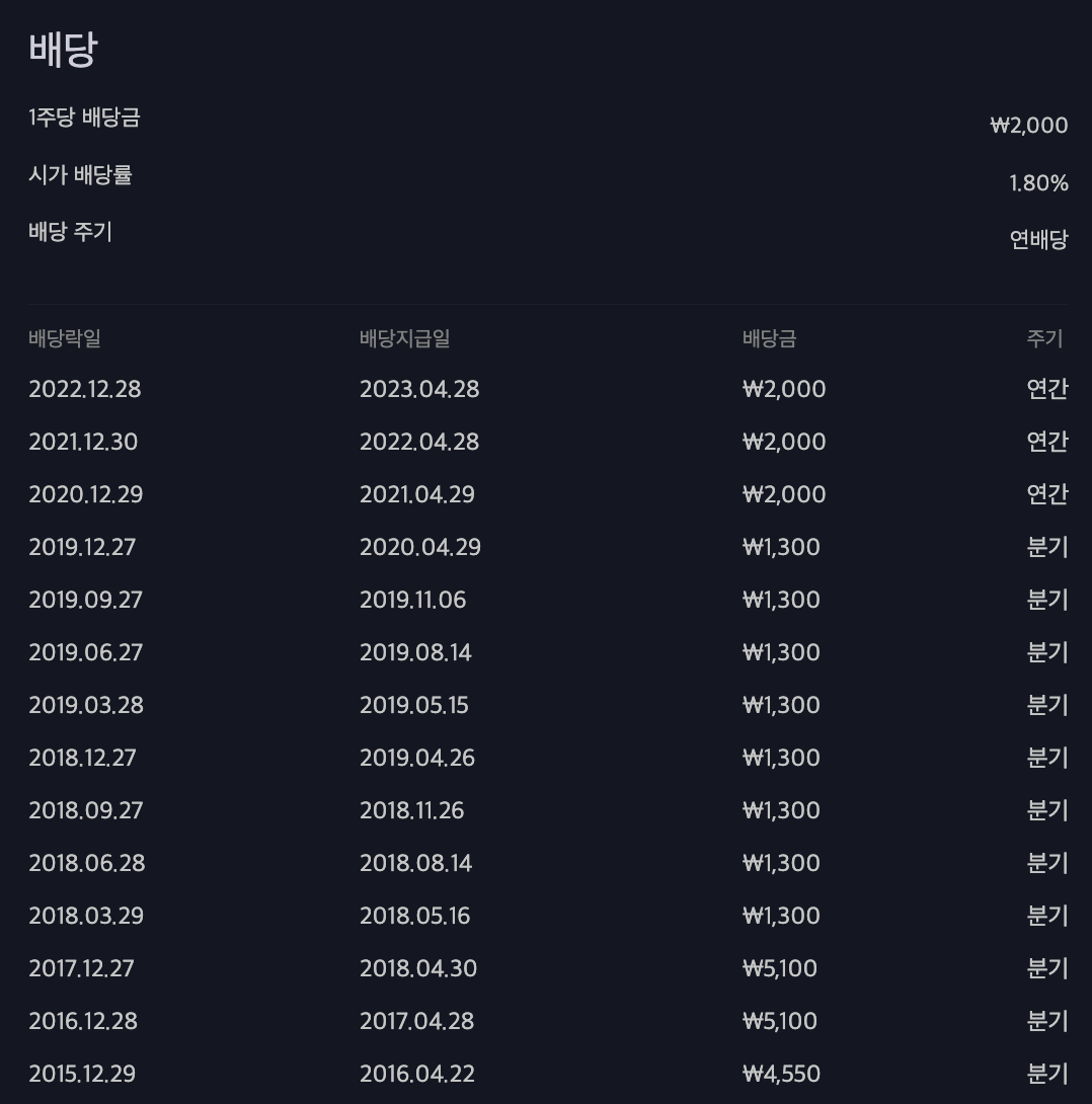 하단의 이미지는 배당금액만 참고하시고 배당기준일은 직접 확인하시는 것이 정확합니다.