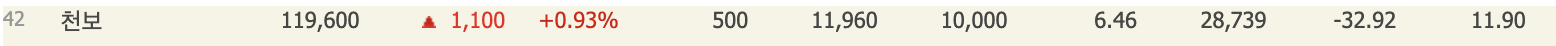 천보 비교대상 종목의 배당금 포스팅 입니다.