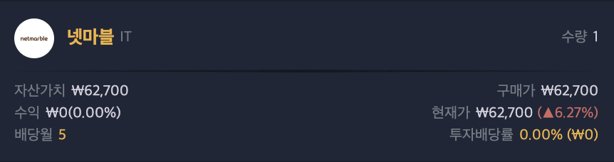(웹젠, NAVER(분기배당), 카카오, 컴투스, 엔씨소프트, 위메이드)