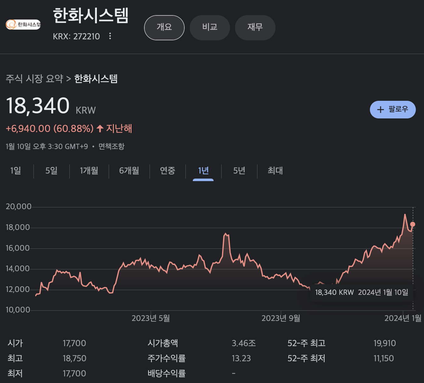 한화시스템(272210) 주가 및 뉴스 - Google Finance
