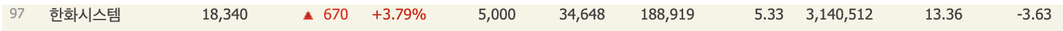(한화에어로스페이스, 한화투자증권, 한화솔루션, 한화, 한화오션)