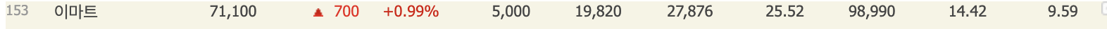 이마트는 코스피에 상장되어 있으며 시가총액 153위의 기업 입니다.(2024년 3월기준)