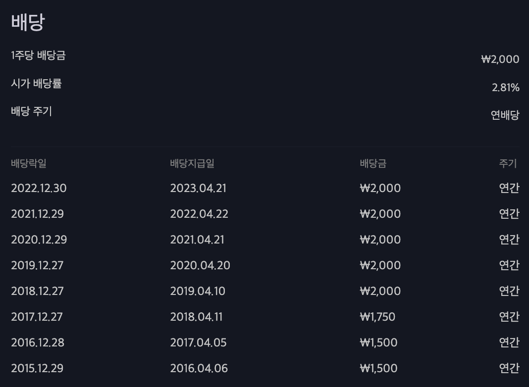 하단의 이미지는 배당금액만 참고하시고 배당기준일은 직접 확인하시는 것이 정확합니다.