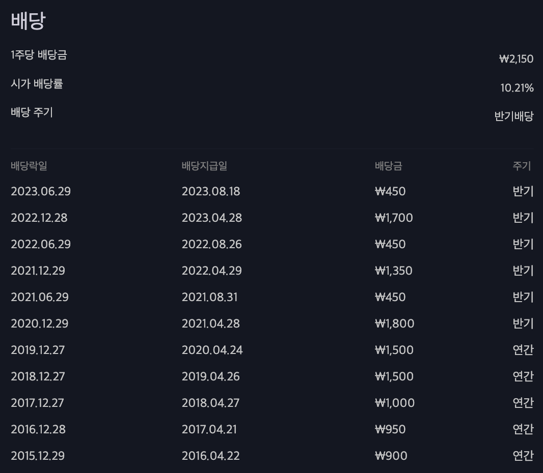 배당월은 2023년 12월월 배당기준일 제도가 개선되어서 기업마다 이제 달라집니다.