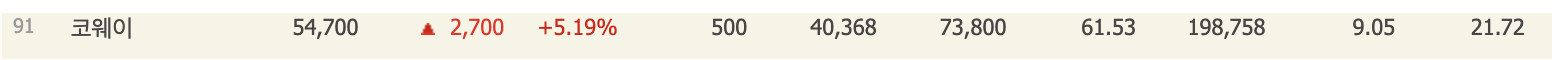 코웨이는 코스피에 상장되어 있으며 시가총액 91위의 기업 입니다.(2024년 3월기준)
