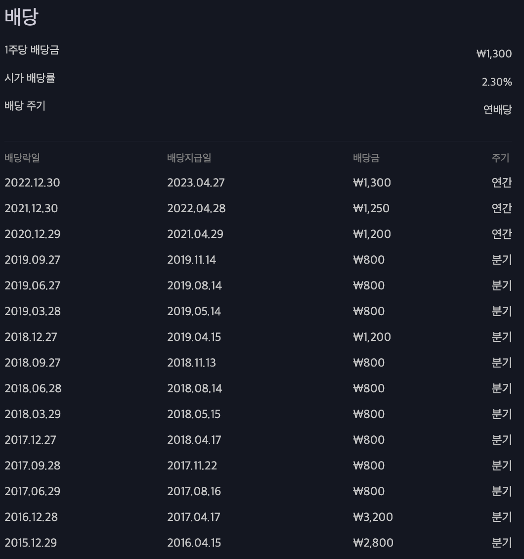 하단의 이미지는 배당금액만 참고하시고 배당기준일은 직접 확인하시는 것이 정확합니다.
