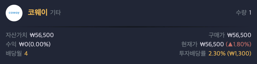 코웨이 비교대상 종목의 배당금 포스팅 입니다.