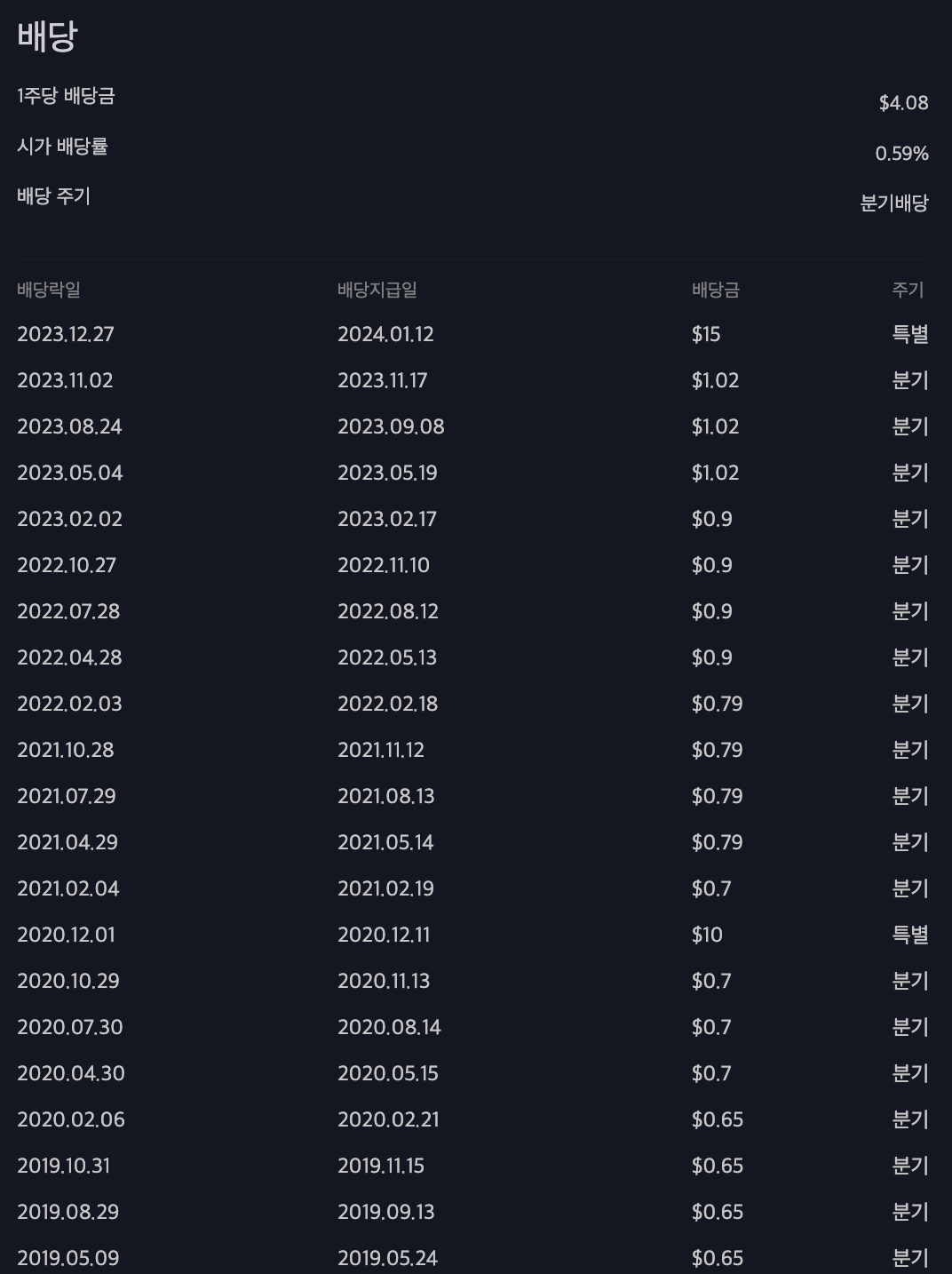 2024년 1월에는 특별배당을 했습니다.