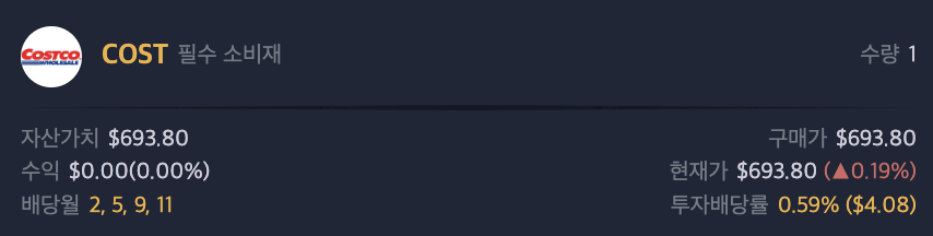 코스트코(COSTCO) 비교대상 종목의 배당금 포스팅 입니다.