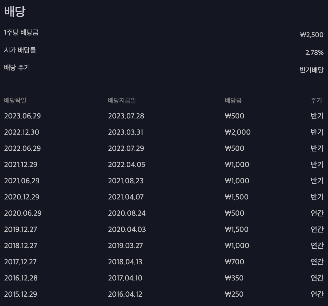 2021년부터는 반기 배당을 하고 있습니다.