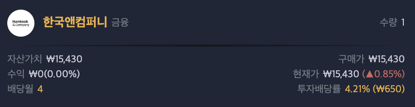 한국앤컴퍼니 비교대상 종목의 배당금 포스팅 입니다.