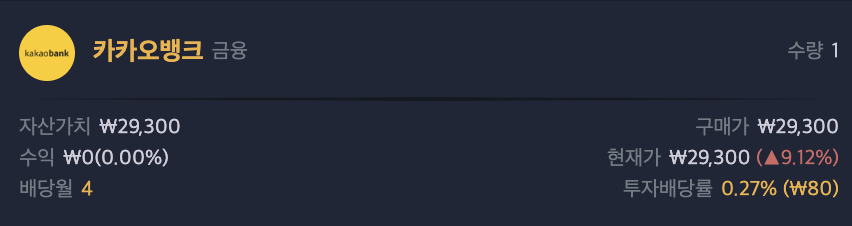 (카카오, 삼성전자(분기배당), SK하이닉스(분기배당), 삼성SDI, KB금융(분기배당), 우리금융지주,