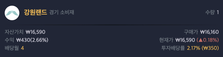 강원랜드는 2016년부터 연간배당을 실시했습니다.