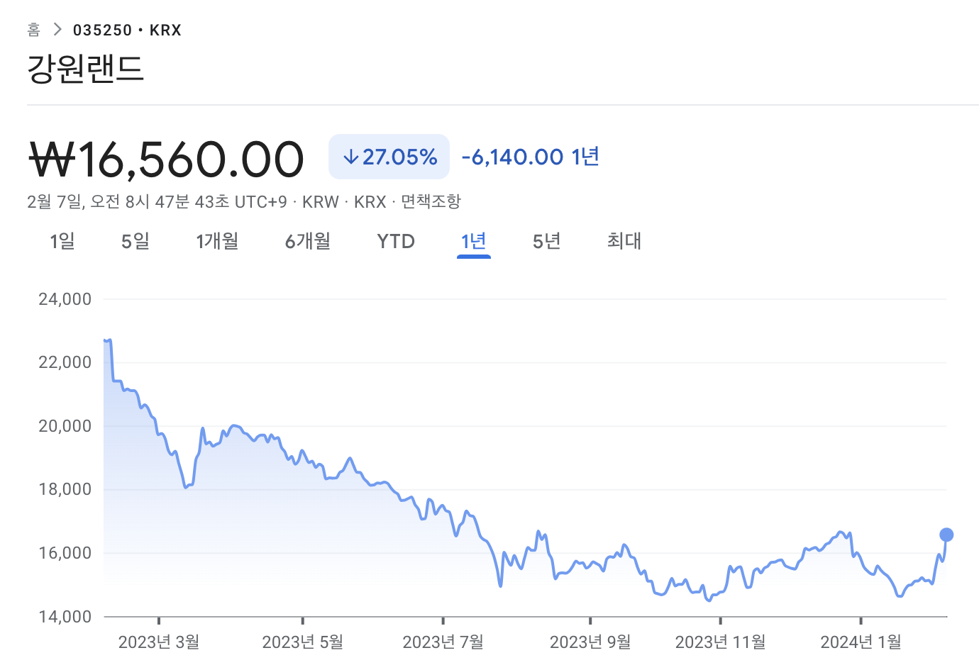 강원랜드 주가(2024년 2월기준)
