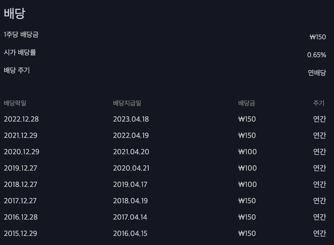 하단의 이미지는 배당금액만 참고하시고 배당기준일은 직접 확인하시는 것이 정확합니다.