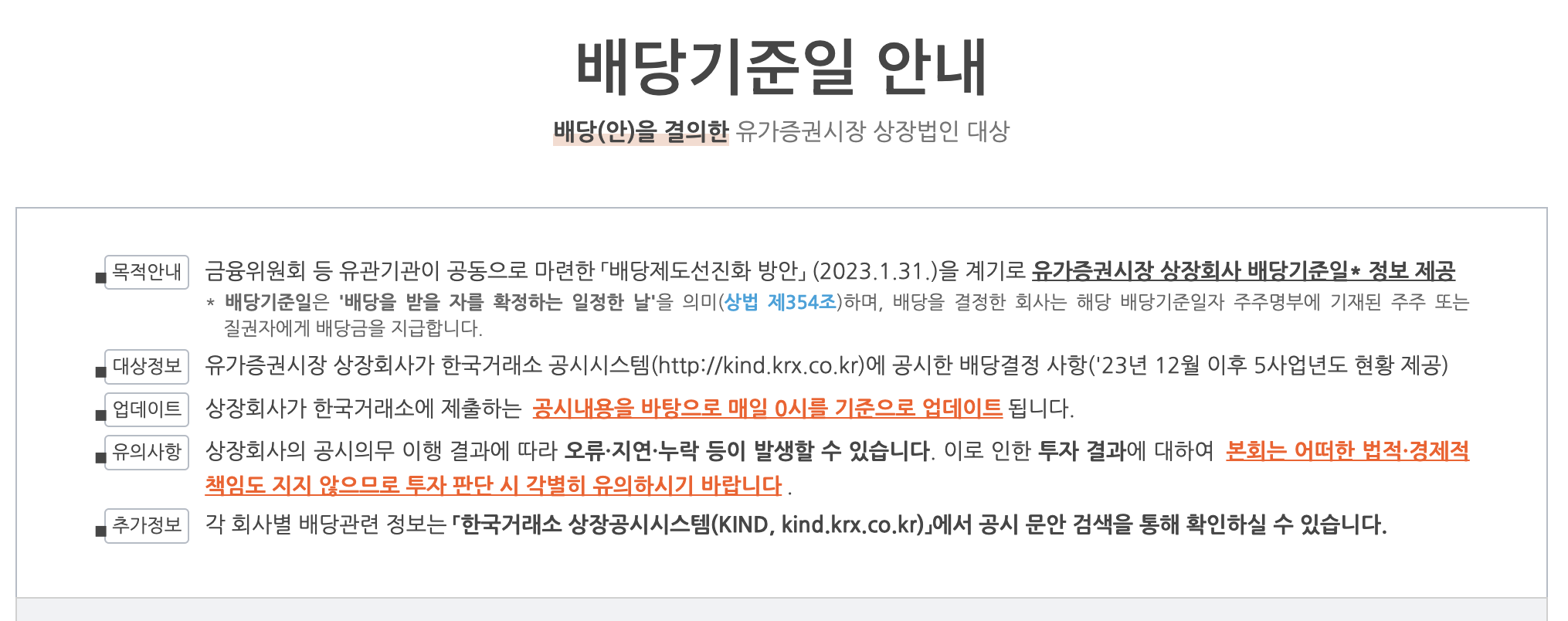 2023년 12월14일 이후부터는 각 기업별로 배당기준일을 꼭 확인해야 합니다.