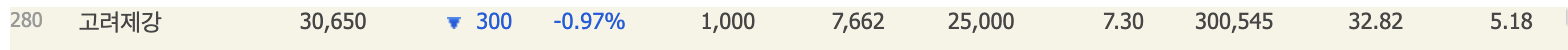 고려제강은 코스피에 상장되어 있으며 시가총액 280위의 기업 입니다.(2024년 2월기준)