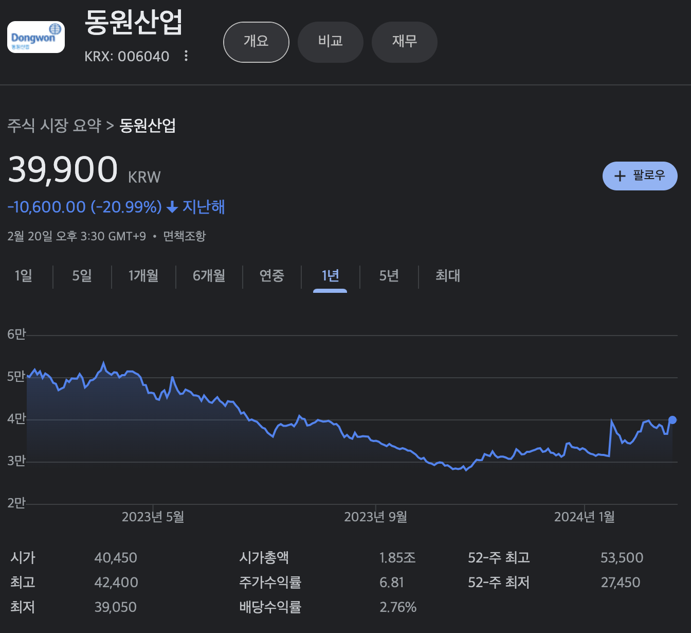 동원산업(006040) 주가 및 뉴스 - Google Finance
