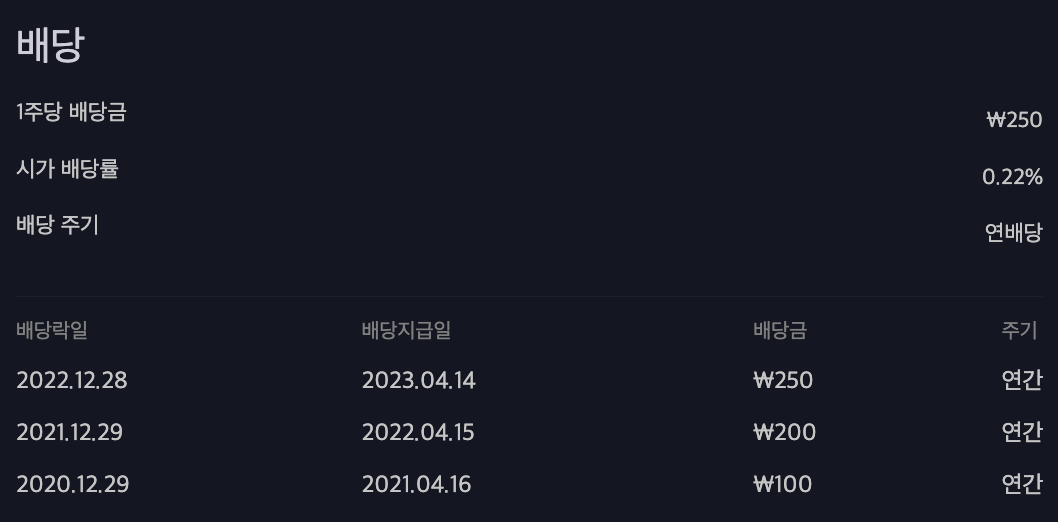 시가 배당률은 0.22% 였습니다.