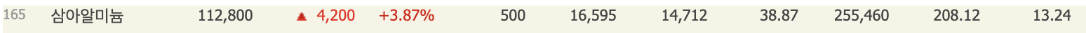 삼아알미늄 비교대상