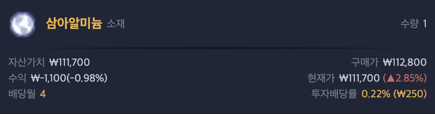 삼아알미늄 비교대상 종목의 배당금 포스팅 입니다.