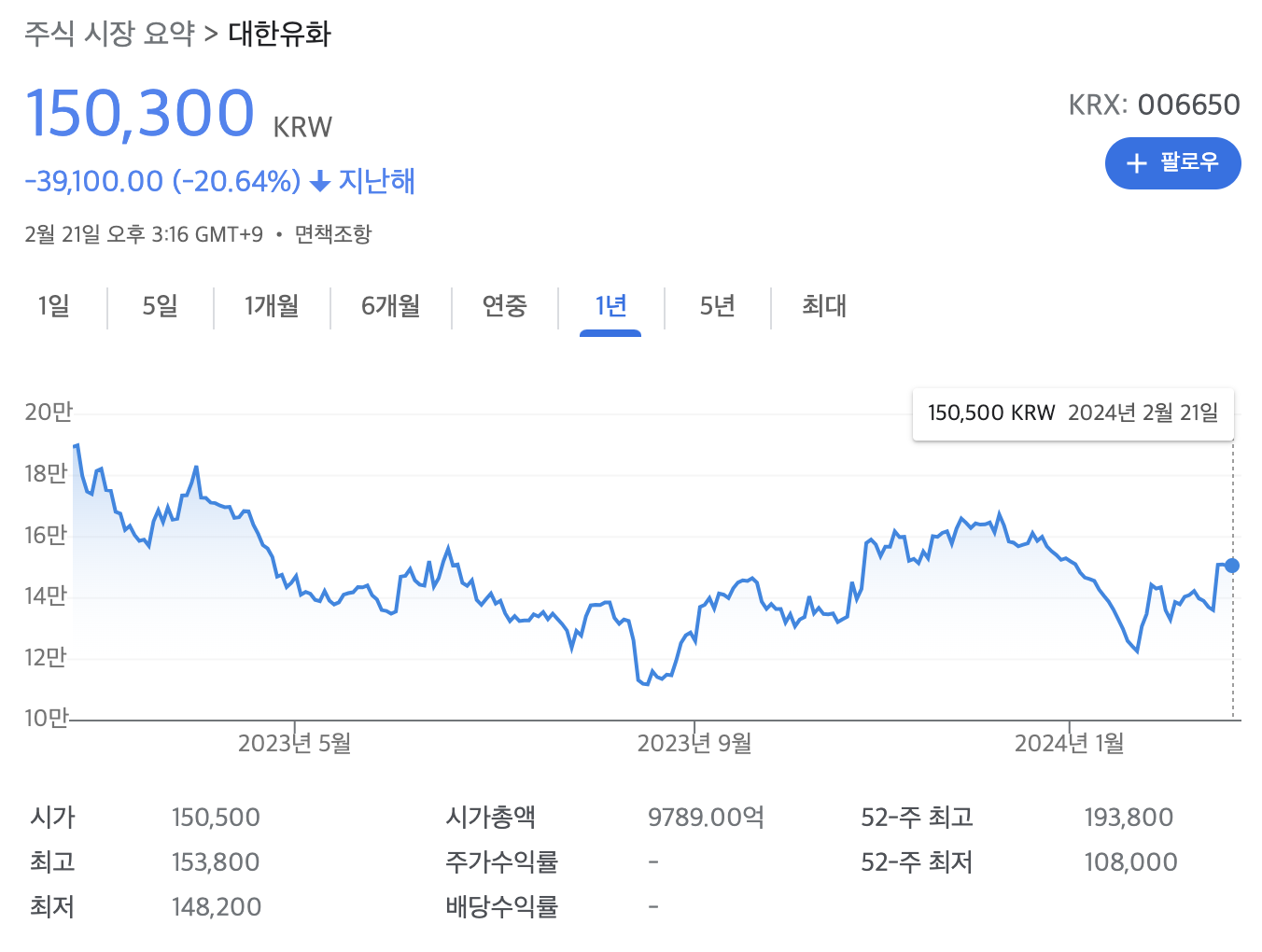 대한유화(006650) 주가 및 뉴스 - Google Finance
