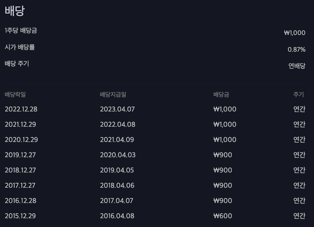 하단의 이미지는 배당금액만 참고하시고 배당기준일은 직접 확인하시는 것이 정확합니다.