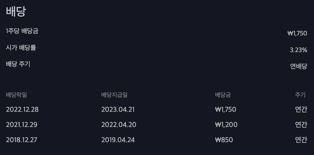 하단의 이미지는 배당금액만 참고하시고 배당기준일은 직접 확인하시는 것이 정확합니다.