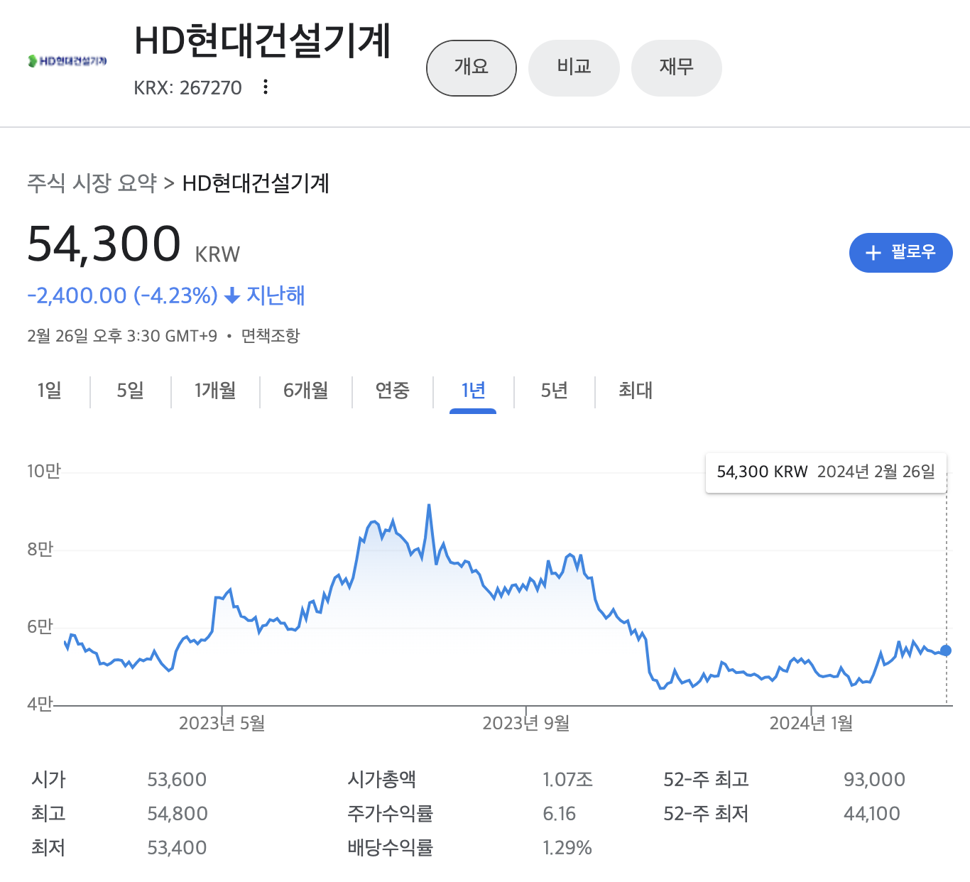 HD현대건설기계 - 네이버페이 증권 : 네이버페이 증권