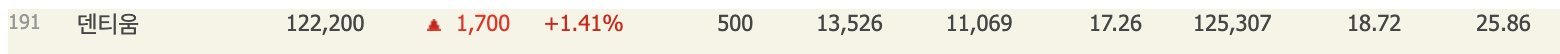덴티움은 코스피에 상장되어 있으며 시가총액 191위의 기업입니다.(2024년 2월기준)
