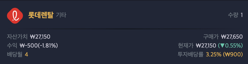 롯데렌탈 2022년도 첫 연간 배당을 실시 했습니다.