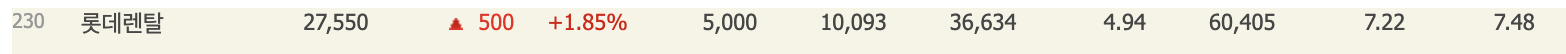 - 롯데렌탈 네이버증권, 구글 금융