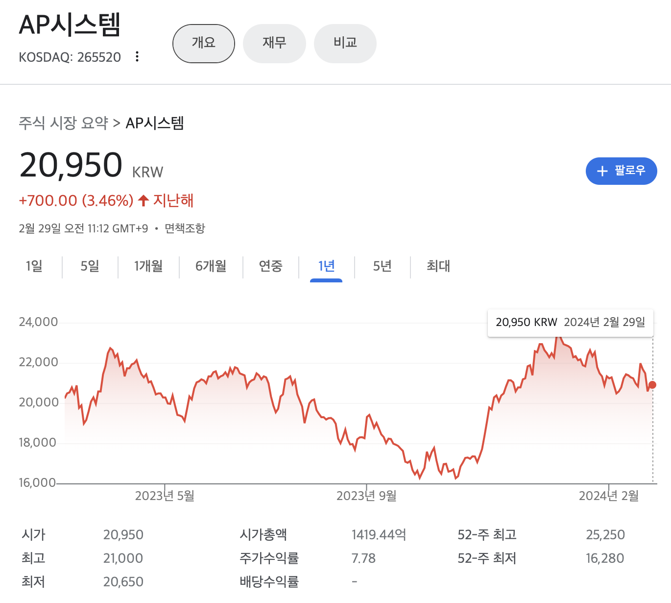 AP시스템(265520) 주가 및 뉴스 - Google Finance
