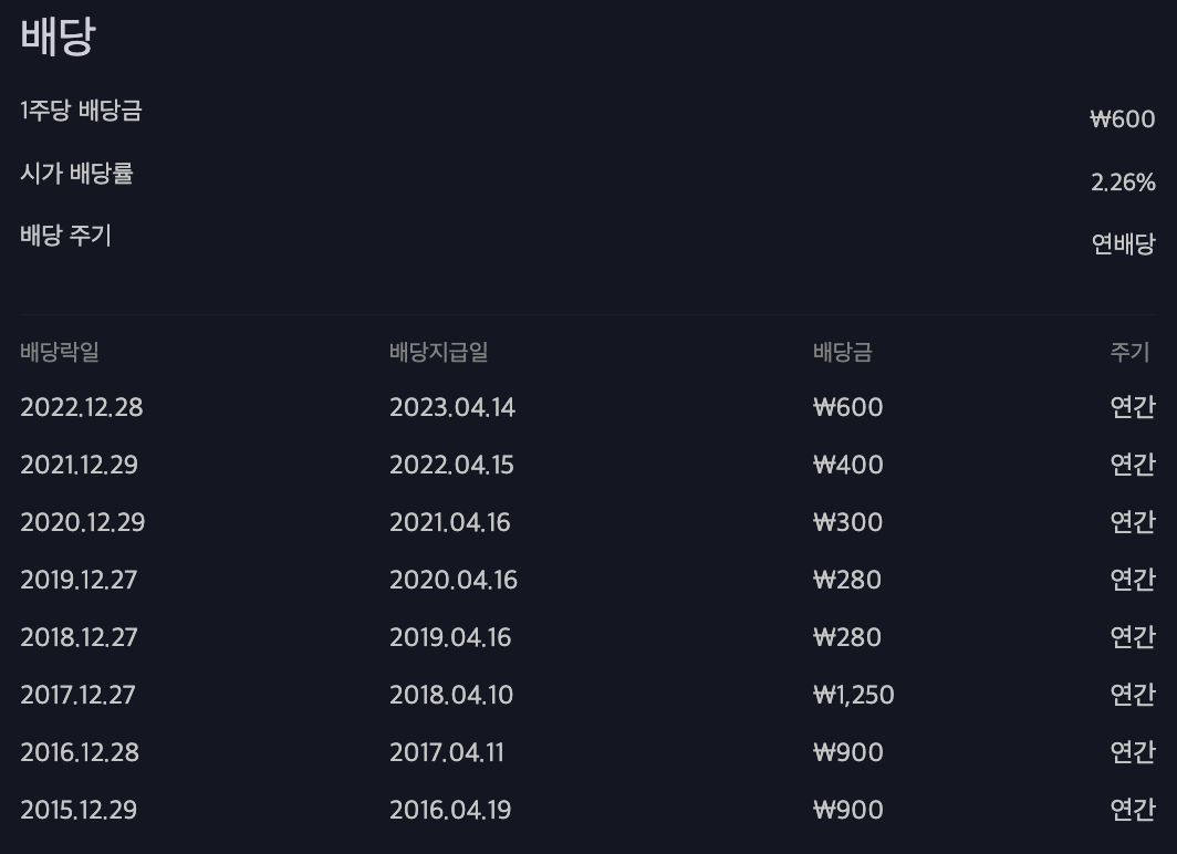 하단의 이미지는 배당금액만 참고하시고 배당기준일은 직접 확인하시는 것이 정확합니다.