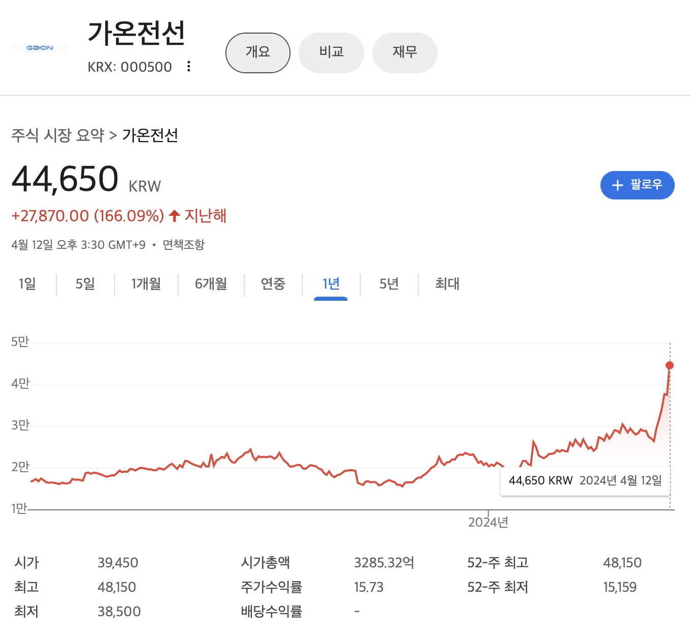 가온전선(000500) 주가 및 뉴스 - Google Finance